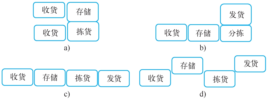 3)应根据需求分类进行仓储规划布局。不同类型的仓库应分开设置,如集装箱货物仓库和零担仓库;库内应对不同物资进行分区存放,如发送、中转、到达物资。