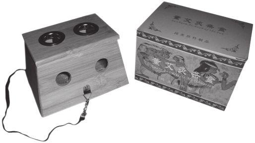 用一种特制的盒形木制灸具,内装艾卷,固定在一个部位施灸的方法。温灸盒按其规格分大、中、小3种。温灸盒的制作,取规格不同的木板,厚约0.5厘米,制成长方形木盒,下面不安底,上面制作一个可随时取下的盖,与盒之外径大小相同,在盒内中下部安装铁窗纱一块,距底边3~4厘米。