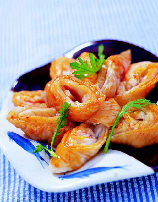 【调料】 精盐15克,味精10克,玫瑰露酒20克,葱段20克,姜片10克,白醋、蒜茸各适量,香料包1个(内装香叶3克,花椒2克,八角6粒,草果2只,桂皮15克)。