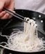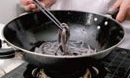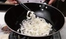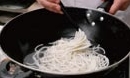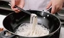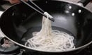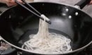⑤ 烹入料酒、葱姜汁、鸡汤,下入面条、精盐、鸡精、味精炒匀入味即可。