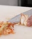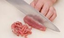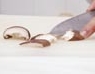 ② 将牛肉切成片,西蓝花、口蘑改刀成片。