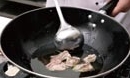 ⑤ 入葱末、姜末炒香、料酒、鲜汤、香菇丁、冬笋丁略烧。
