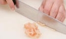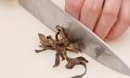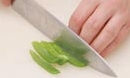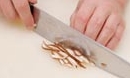 ① 香菇用水浸泡至软,洗净泥沙,除去蒂、梗,用刀切成片。