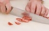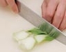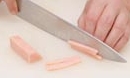③ 黄瓜洗净,同火腿肠均切成象眼片。
