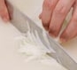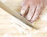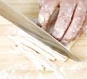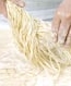 ② 面粉用凉水加精盐1/4小匙和成硬面团揉匀,再擀成大薄片,折叠后切成面条。