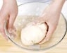 ① 面粉放入容器内,加入用精盐1/2小匙调成的淡盐水和成硬面团饧透。