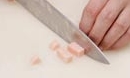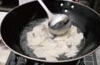 ② 面团擀成大片,改切方丁,入沸水锅内煮熟透沥水。