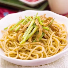 [材料] 中筋面条200克,猪瘦肉50克,黄瓜、胡萝卜、水发香菇各25克。料酒2小匙,酱油2小匙,精盐3克,味精2克,葱丝10克,姜丝8克,香油2小匙,鲜汤150克,植物油40克。
