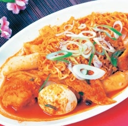 [材料] 中筋面粉500克,桔梗、辣白菜、酱翅尖、明太鱼各50克。葱30克,熟鸡蛋1个,熟芝麻20克,大酱、辣酱、辣椒油各4小匙,味精、鸡精各1小匙,香油1小匙,植物油40克,淀粉2小匙。