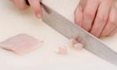 ③ 鱼肉丁用湿淀粉拌匀上浆。