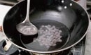 ⑤ 锅内加植物油烧热,下入牛肉片煸炒至熟,放入葱末、姜末、花椒水炒香。