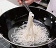 ③ 把准备好的面条放入开水锅中煮熟捞出,并沥干。