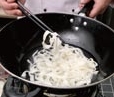 ③ 加入蚝油、酱油、精盐、高汤精、白糖、湿淀粉、香油调味,炒匀后浇在面上即可。