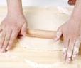 ② 面团饧30分钟,擀成厚薄均匀的面片。