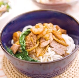 [材料] 中筋面条1000克,虾仁100克,猪肝片250克,腰花片250克,嫩笋片250克,蘑菇片100克,榨菜丝100克,菠菜叶40克,猪肚丝250克,虾子20克。鸡汤1000克,熟植物油400克,精盐25克,胡椒粉2小匙,味精25克,香油100克。