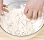 ① 将面粉放入大碗内,加精盐和淀粉,再加水300克(冷天用温水),搅成稠糊状,饧透。要求搅得稠且匀,饧的时间越长越好。