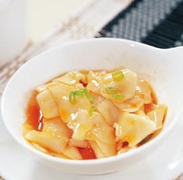 [材料] 中筋面粉500克,雪梨、黄瓜、小白菜各50克,番茄40克,熟鸡蛋1个,红椒、生菜各20克。辣酱50克,精盐3/5小匙,鸡精1小匙,味精1小匙,香油1小匙,白糖2小匙,醋2小匙,植物油40克。