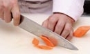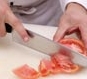 ② 把黄瓜、雪梨切细条;小白菜、生菜撕成片;番茄切小块。