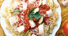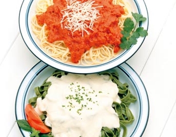 [材料] 意大利面500克,西葫芦100克,豆腐100克,卷心菜20克。番茄酱100克,白糖80克,香菜叶2/5小匙。