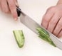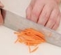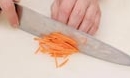 ② 熟鸡脯肉、火腿、黄瓜、胡萝卜均切成丝。