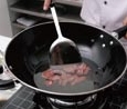 ④ 把牛肉洗净切片,放入加油的锅中翻炒,加入咖喱粉、牛肉粉、紫苏粉炒成六分熟。