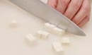 ② 锅内放油烧热,将切好的丁煸炒,加精盐、酱油调味,滴香油,炒成臊子汁。