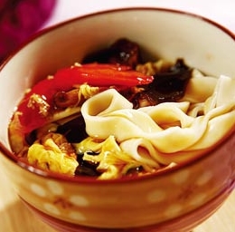 ④ 面条煮熟后加入备好的卤,另一面加入调好的汤即可。