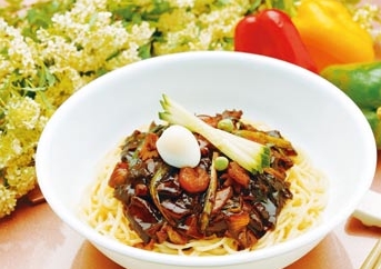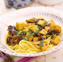[材料] 玉米面条200克,豆腐50克,水发黑木耳、韭菜、虾仁各30克。料酒、酱油各1小匙,甜面酱1大匙,精盐、味精各2克,湿淀粉2小匙,姜末5克,鲜汤100克,香油2小匙,植物油50克。