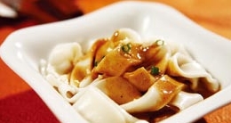 担担面为全国著名小吃之一,是四川的独特风味。标准的面担,是用硬木制作的,担的一头是“操作台”兼“贮藏室”,放有面条、抄手皮、肉馅、蔬菜及各式调料;另一头是“灶披间”、小风箱,可现场煮面。