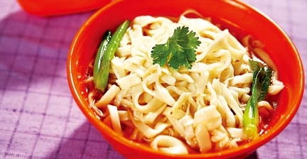 [材料] 玉米面条200克,羊肉100克,黄花菜、韭薹各25克,黑木耳15克。香菜10克,葱段、姜块各15克,料酒、酱油各2小匙,精盐3克,味精2克,调料包(内装大料、桂皮各5克,陈皮8克,小茴香1克)1个,羊骨汤1000克,辣椒油、香油各2小匙。