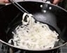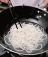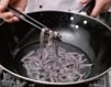 ③ 下入高粱米面条,用筷子轻轻拨散,加入精盐、鸡精烧开。
