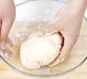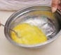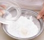 ③ 余下的面粉放入另一容器内,加入橙汁搅成均匀的小面疙瘩。