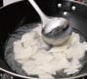 ⑥ 锅内加鸡汤、精盐、酱油、味精烧开,淋入香油。