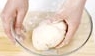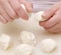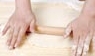 ① 面粉中加少许精盐,用凉水和成面团,揉匀,揪成大小相同的剂子,搓成条。