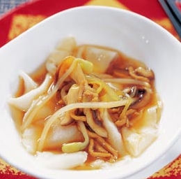 [材料] 中筋面粉500克,鸡腿肉200克,白萝卜100克,酱牛肉片50克,小白菜50克,熟鸡蛋2个,精盐1小匙,味精1小匙,鸡精1大匙,香油1小匙,植物油40克,葱10克,姜汁2小匙,淀粉1小匙。