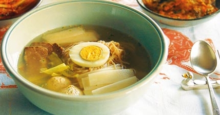[材料] 中筋面粉150克,鸡蛋清2个。鸡汤720克,葱花1小匙,植物油1大匙,精盐、味精各1/2小匙,料酒、胡椒粉各1/2小匙。