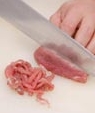 ① 猪肉、香菇切丝;胡萝卜切成片;鲜竹笋切成块。