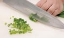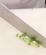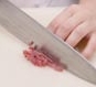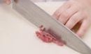 ③ 把猪肉剁成肉末,炸成肉卤放入碗中表面撒上香葱圈。