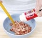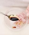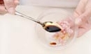 ② 面粉75克放入容器内,加入番茄汁搅成均匀的小面疙瘩。