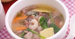 [材料] 中筋面粉150克,番茄汁、橙汁各30克,银耳、黑木耳各15克,菠菜25克。精盐1/5小匙,白糖2小匙,鸡汤500克。