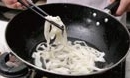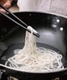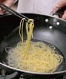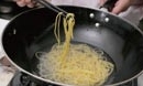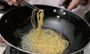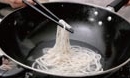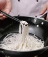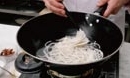 ② 锅置于火上,加入1/2容积清水,烧沸后下入面条,煮8分钟至熟,捞出装碗。