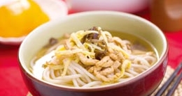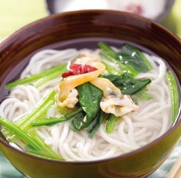 [材料] 细中筋面条200克,蚬子肉50克,菠菜100克。葱丝、姜丝各1小匙,精盐、味精各1/2小匙,芥末油、白糖各1小匙,鲜汤750克。