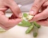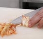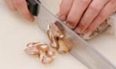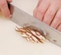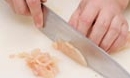 ② 香菇切条;玉米笋尖切段;虾仁用开水烫好。