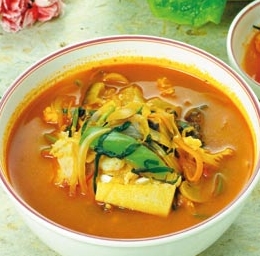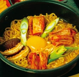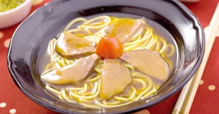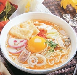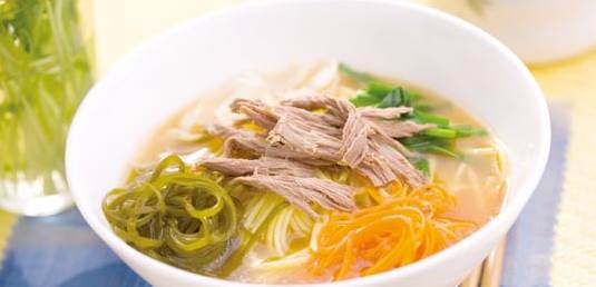 ③ 将以上料均加入调好味的汤中,倒入面中即可食用。