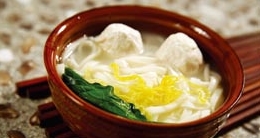 注意鸡肉丸子不宜煮得时间过久,荤素相辅,面煮的要筋道。