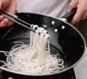 ② 锅置于火上,加2/3容积清水,烧沸后下入面条,煮8分钟至熟,捞出装碗。