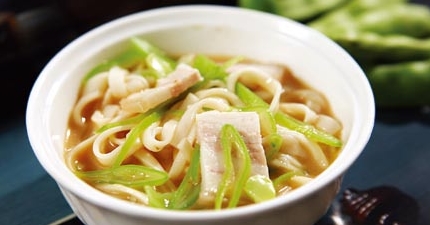 [材料] 拉面200克,水发香菇100克,酱肉150克,红辣椒10克,青菜30克。鲜汤700克,植物油1大匙,葱、姜末各1/2小匙,精盐、味精各1/2小匙,料酒、酱油各1大匙,白糖1/3小匙。