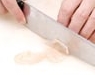 ① 鱼肉蓉内加入鸡蛋清、料酒、胡椒粉、湿淀粉、植物油、葱末、姜末及鲜汤25克、精盐1/4小匙、味精1克搅匀上劲。