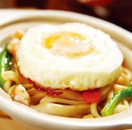 [材料] 中筋面条150克,虾仁50克,草菇、猴头蘑、胡萝卜、油菜心各30克,鸡蛋1个。鲜汤3杯,植物油3大匙,葱、姜末各1/2小匙,精盐1/2小匙,味精1/2小匙,料酒1大匙,胡椒粉2克。