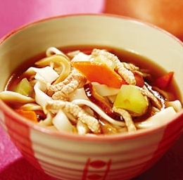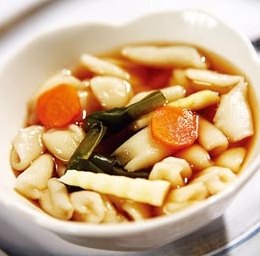 [材料] 猫耳面150克,黑木耳、海带结、胡萝卜、竹笋各20克。鲜汤720克,植物油1大匙,葱、姜末各1小匙,精盐、味精各1/2小匙,料酒、香油各1小匙,胡椒粉2克。
